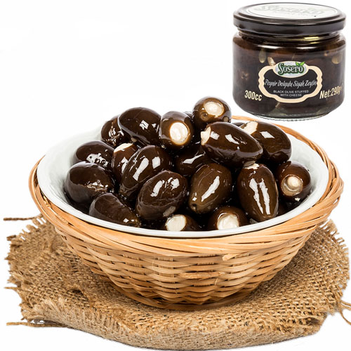 Zwarte olijven gevuld met kaas 500 gr
